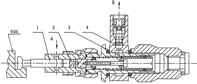 1—工作活塞 2—控制活塞 3—調(diào)節(jié)螺套 4—單向閥 | |||||||||||||||