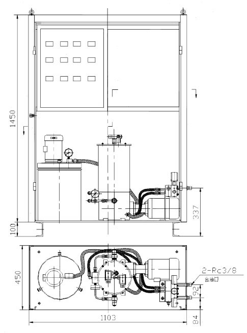 一、概 述 CDQ型電動(dòng)潤(rùn)滑泵裝置由DB型單線潤(rùn)滑泵、DJB-50型電動(dòng)加油泵、ZYCDQ-DKX型電氣控制柜、DR4-5型液壓自動(dòng)換向閥及防護(hù)柜組成,適用于雙線潤(rùn)滑系統(tǒng),也可取消DR4-5型液壓自動(dòng)換向閥則可適用于單線潤(rùn)滑系統(tǒng)。各組成部件的技術(shù)參數(shù)和外形尺寸詳見(jiàn)本樣本。 二、技術(shù)參數(shù) 1、系統(tǒng)公稱流量:0~25、0~45、0~50、0~90ml/min 2、系統(tǒng)公稱壓力:20MPa 3、 加油泵公稱流量:50L/h 4、加油泵公稱壓力:1.5MPa 5、單線泵電機(jī)功率:0.37kW(流量為0~25或0~45ml/min)或0.55kW(流量為0~50或0~90mL/min) 6、加油泵電機(jī)功率:0.18kW 7、單線泵貯油桶容積:8L 8、加油泵貯油桶容積:25L 三、外形尺寸 | |
