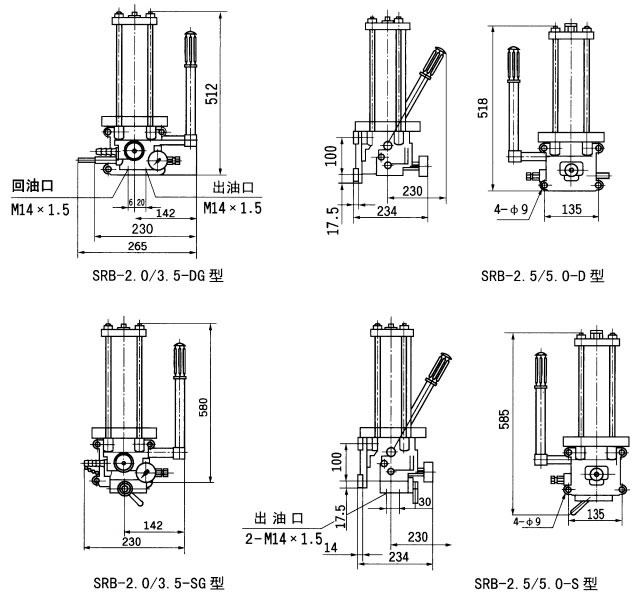 七、使用說明 1、手動潤滑泵應(yīng)垂直安裝,泵的上方及周圍要留有指示桿上升補脂操作的空間。需在室外或環(huán)境惡劣的場合安裝時,應(yīng)將泵置于防護(hù)罩內(nèi) 2、貯油筒內(nèi)無潤滑劑時,不準(zhǔn)操縱手柄。 3、向貯油筒內(nèi)加注潤滑脂,必須使用專用的手動或電動加油泵從加油口充填;潤滑油從貯油筒頂部加入。 4、使用壓力不允許超過泵的公稱壓力。 5、安全保險片不允許二片重疊使用,不允許采用其它材料代用。 6、單線型泵上回油指示器的作用是操作者通過觀察指示器活塞的運動行程,就可知道潤滑系統(tǒng)的供油潤滑狀況。使用時,先計算好各潤滑部位所需的給油量,配置分配器,并把主分配器上多設(shè)的一個出油口與手動潤滑泵的回油口相接通,使?jié)櫥瑒┓祷氐街甘酒髦校绶祷氐挠土坷塾嬤_(dá)到3.2 8mL,則指示器的活塞指示桿全部伸出,表示各潤滑點已根據(jù)需要完成一個周期的給油,應(yīng)停止供油并把回油指示器的指示桿推進(jìn)。