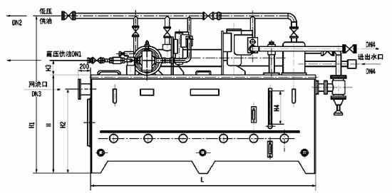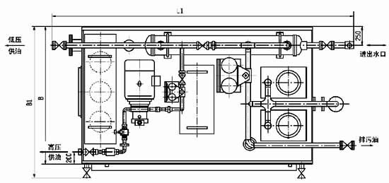| 本油站為整體式,由油箱、兩臺低壓油泵、一臺高壓油泵、二臺雙筒網片式過濾器、回油磁網過濾裝置、列管式油冷卻器、各種控制閥門、管道以及電接點壓力表、鉑熱電阻等組成。 工作原理基本上也和A系列相同;但B系列的低壓油經過過濾和冷卻后外供時,一部分低壓油通過旁路再經過一個雙筒過濾器后才進入高壓泵的吸油口,以提高高壓油的清潔度等級;但應注意當低壓供油實際壓力較小時(例如小于0.2MPa時),由于后一過濾器同樣也有壓差損失(也隨時間逐步增大),為保證高壓油泵順利吸入,吸入口應始終保證正壓(當后過濾器切換前壓差達最大時也必須滿足這一要求);除 流量和A系列有很大不同外,最主要特點(結構特征)為高壓泵吸口前有另一臺過濾器。 其他工作原理和操作控制可參見A系列所述。 | |||||||||||||||||||||||||||||||||||||||||||||||||||||||||||||||||||||||||||||||||||||||||||||||||||||||||||||||||||||||||||||||||||||||||||||||||||||||||||||||