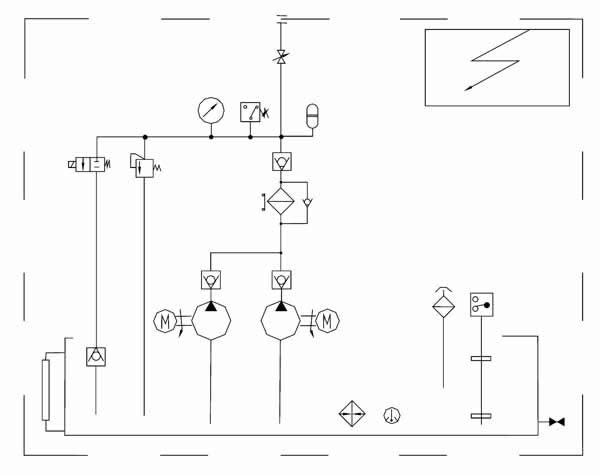 | 該站主要由油箱(帶電加熱器、液位計、電接點溫度計、空氣濾清器、液位控制器)、兩臺高壓油泵裝置(一備一用)、溢流閥、二位二通電磁閥、蓄能器、壓力控制器、過濾器、單向閥、壓力表等和PLC電氣控制箱組成。在電動機的牽引下油泵工作,從油箱內吸入潤滑油加壓排出,途徑單向閥、過濾器、蓄能器后向系統主管線供送。 正常工作時,一臺高壓油泵常開工作,另一臺備用,可通過電氣轉換開關來交替使用,并可通過按鈕開關人工啟動和停止油泵,PLC電氣控制箱對油氣系統實行程序化全自動控制,還可向主控室提供系統“運行”、“停止”、“故障”等遠程信號接口。 | ||||||||||